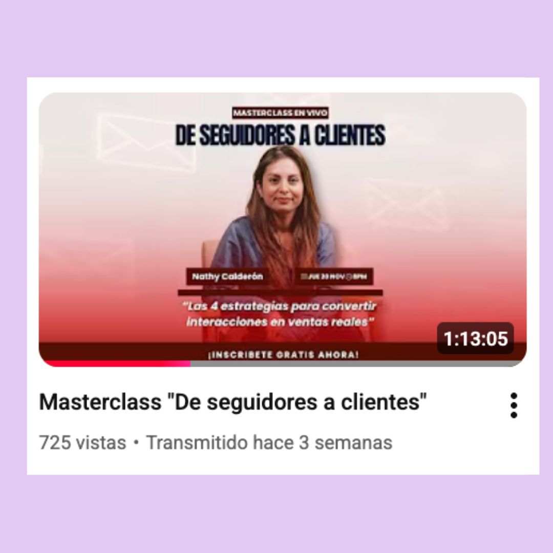🎙️ Clase en vivo grabada "De seguidores a clientes" 4 estrategias para convertir interacciones en ventas reales.