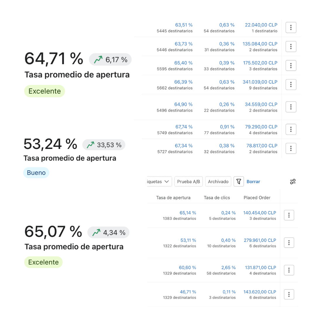 Clientes que en promedio tienen 60% de apertura, comunicando, fidelizando y convirtiendo ventas mensualmente con sus campañas semanales.